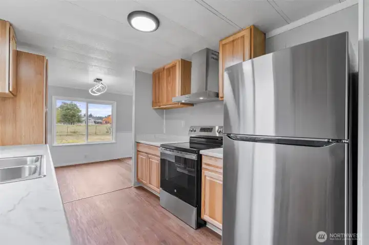 Welcome to this beautifully updated 3-bedroom, 1.75-bath home on over an acre of flat, usable land—outside the flood zone! Featuring new flooring throughout (linoleum and carpet), a fully refreshed versatile kitchen with stunning new cabinetry and appliances, and updated bathrooms with plenty of natural light and modern light fixtures throughout. The property is partially fenced ready for your outdoor activities and pets. Conveniently located on the backside of Applegate Loop, just minutes from downtown Rochester, shopping, and freeway access. Enjoy peaceful country living with easy city convenience!