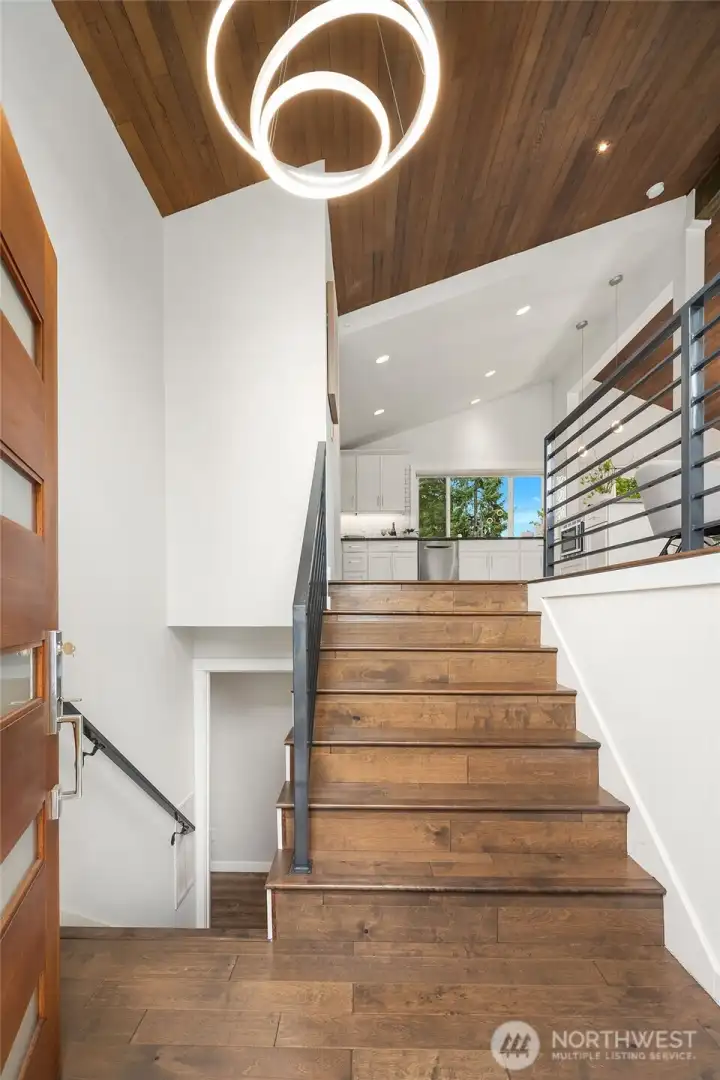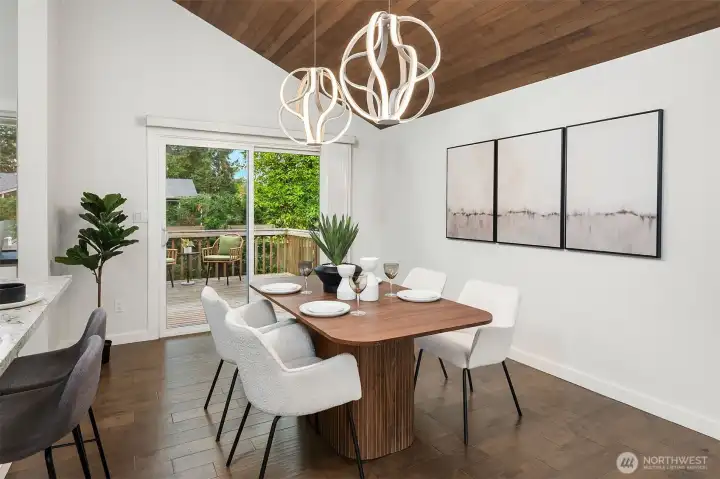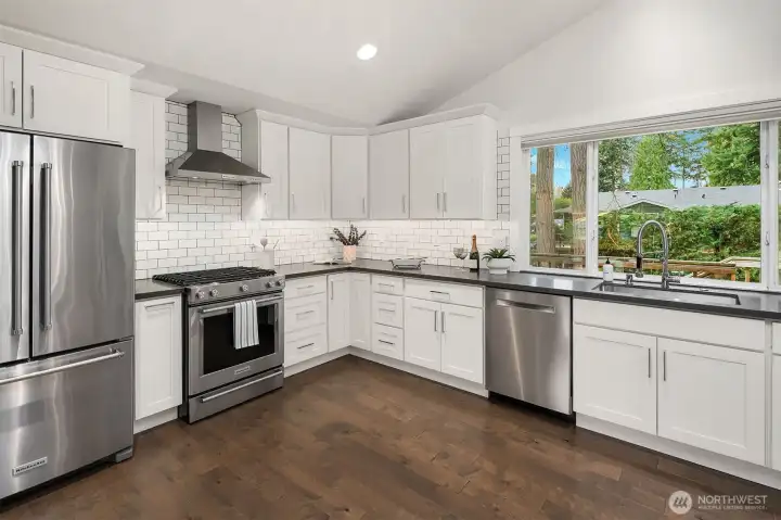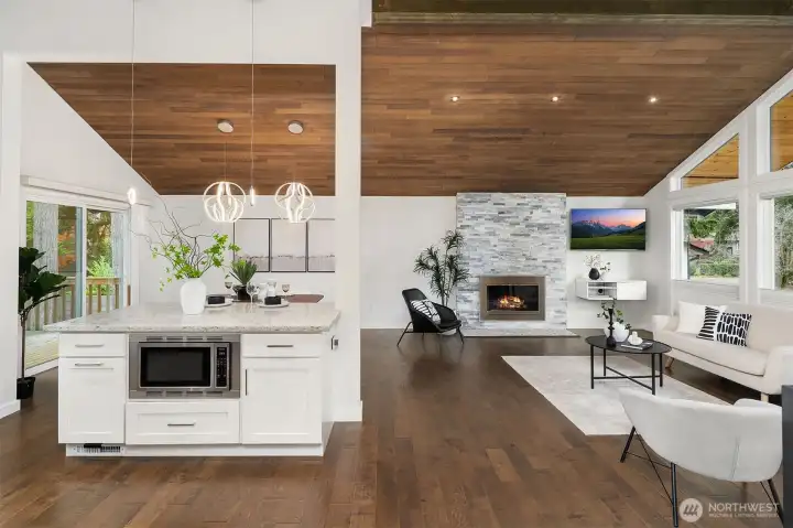 {{Chic, Bright, & stylish turnkey in Kingsgate}} This beautifully updated home features vaulted cedar ceilings, Hardwood flooring, & an open layout w/ a gas fireplace perfect for entertaining. The chef’s inspired kitchen spotlights a large island w/ a built-in microwave, a gas range, & soft-close cabinetry. The main level provides 4 bedrooms, including a serene primary w/ en-suite bathroom & a crisp hall bath w/ double trough sink. Downstairs offers a large rec room w/ wood fireplace, Murphy bed, sleek ¾ bath, laundry room, wine cellar, & extra storage. A large Deck, fenced yard, 2-car garage, & great community amenities, along w/ EZ access to the Tolt Trail & Woodinville Wine District, complete the package & make this a true showstopper!