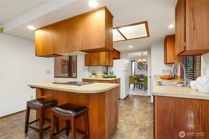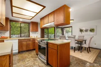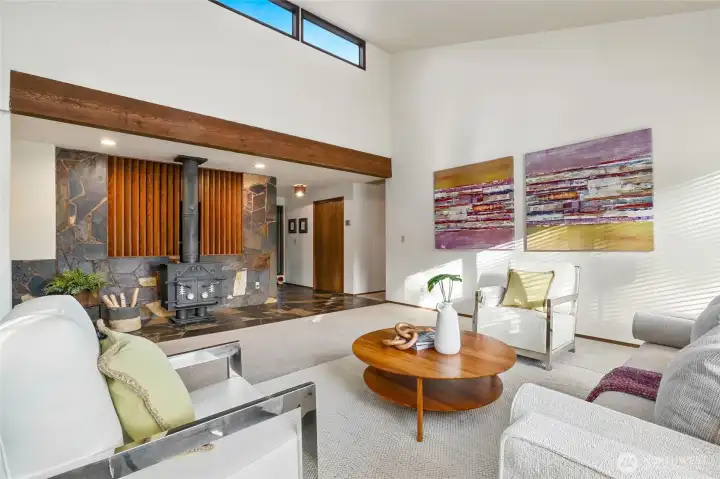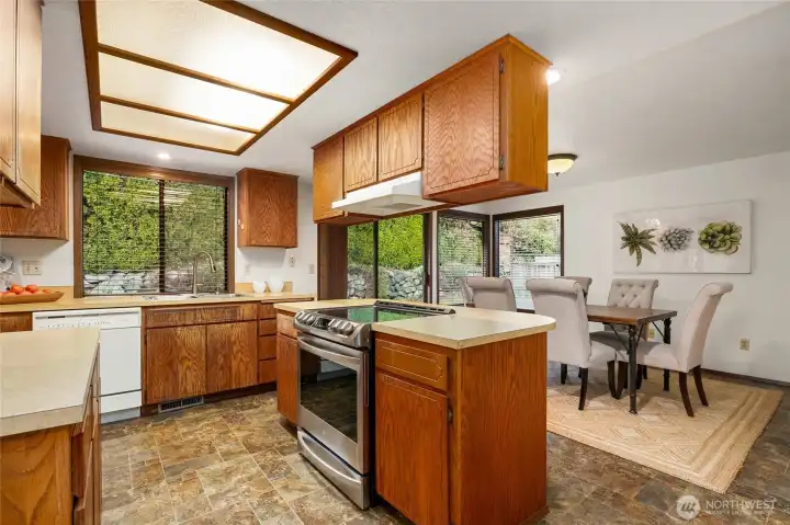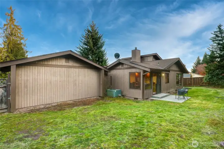 Situated in a quiet neighborhood ideally located near Mill Creek Town Center & Alderwood Mall with easy access to I-5/I-405 and SR-527. Desirable, custom rambler on private, corner lot in cul-de-sac. Formal slate entry opens to sunny living room with vaulted ceiling and wall of windows. Territorial views. Centrally located yet unintrusive wood burning fireplace effectively heats entire home. Spacious kitchen with center island and breakfast bar opens to family room. Slider to fully fenced, level backyard - perfect for outdoor activities. Primary bedroom with 3/4 bathroom. Two additional good sized bedrooms. Full guest bath. 2-car garage with storage. Heat pump provides AC in the summer and warmth in the cooler months. Wood blinds throughout