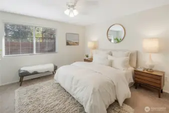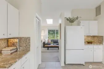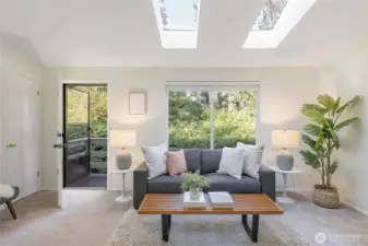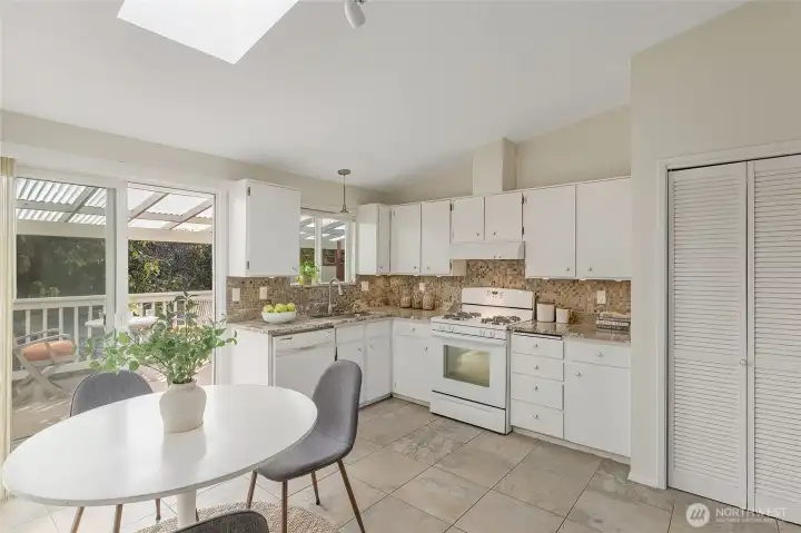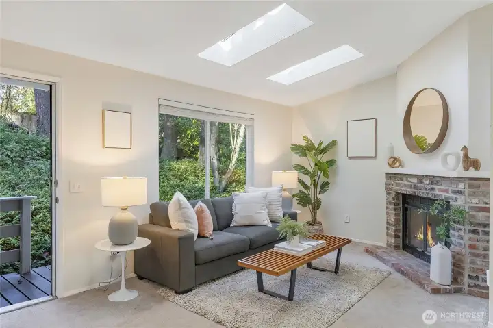 With a thoughtful layout & timeless simplicity this great single-level home balances warmth, comfort, efficiency & ease. As you enter, vaulted ceilings & multiple skylights fill the interior with natural light, creating an open, airy atmosphere. Spacious eat in kitchen w/ gas cooking looks out over covered deck. The living area with tall ceilings, skylights & cozy fireplace maintains an ongoing conversation with the outdoors. Plenty of room with 3 generous beds & updated continental bath. Attached one car garage & Pre Inspected! Deeded to the Civic Club and minutes to North City, LFP Town Center, restaurants, shopping, light rail & I-5. Tucked into a quiet natural setting in the heart of North City you literally feel miles away from it all.
