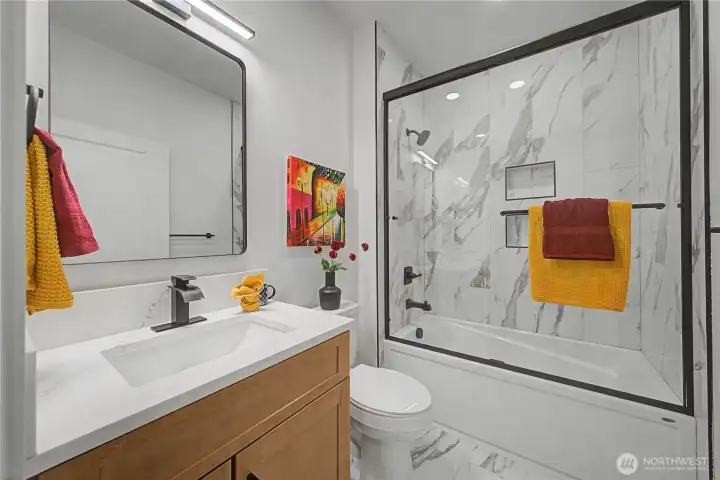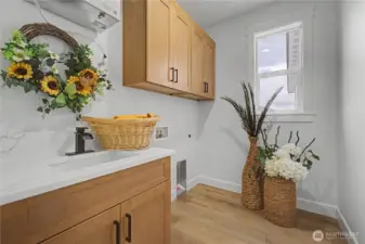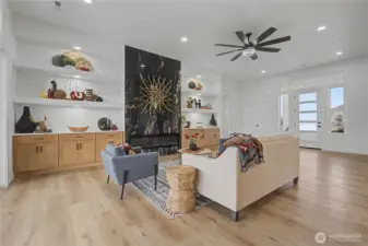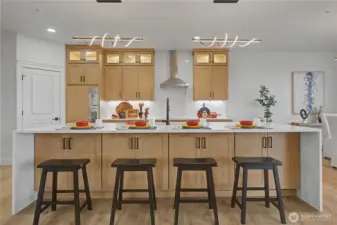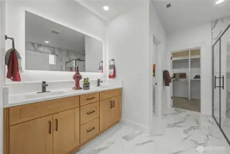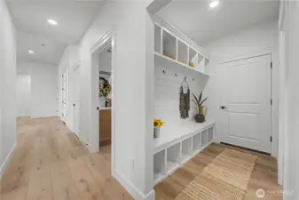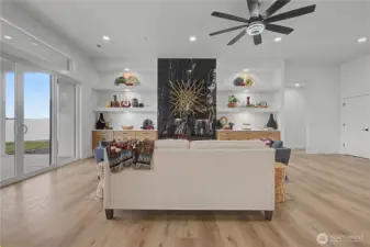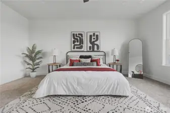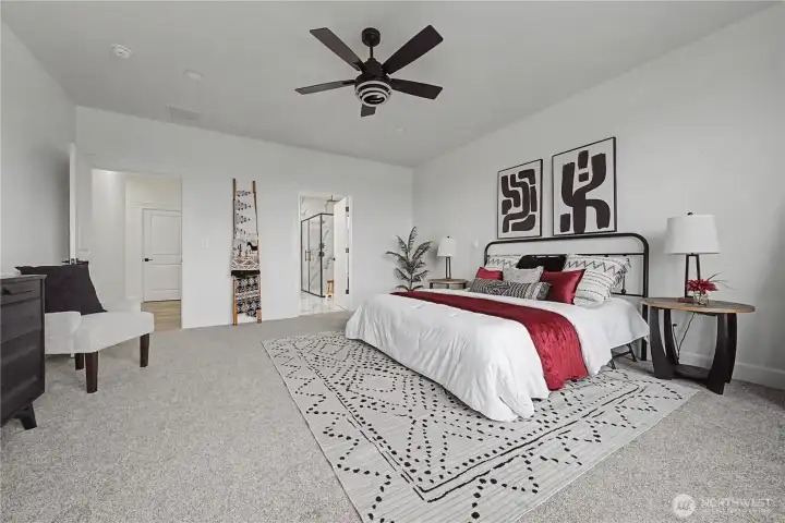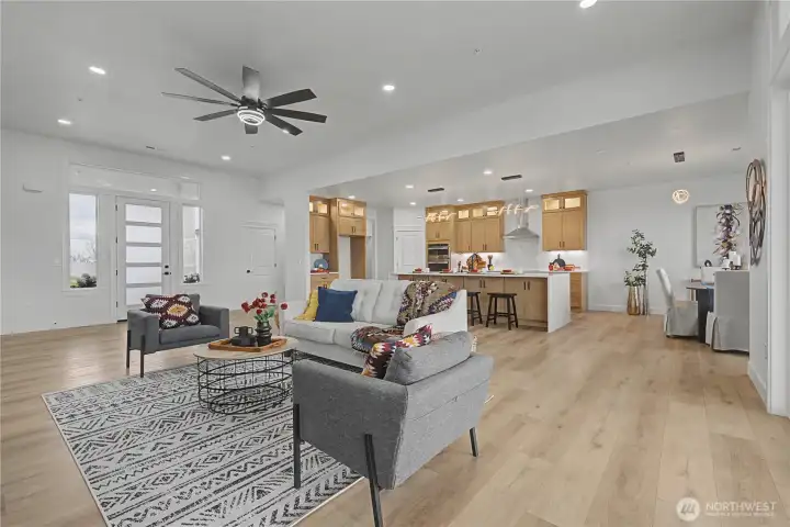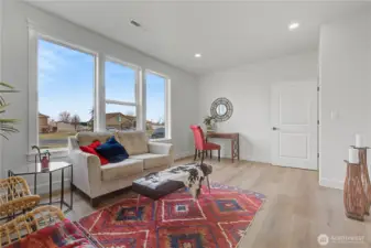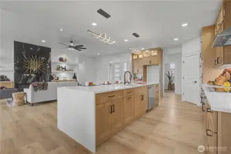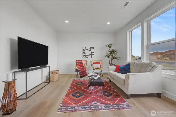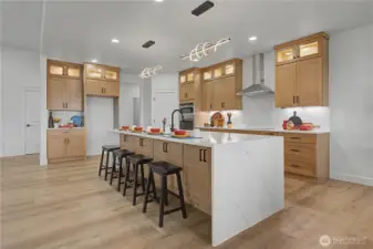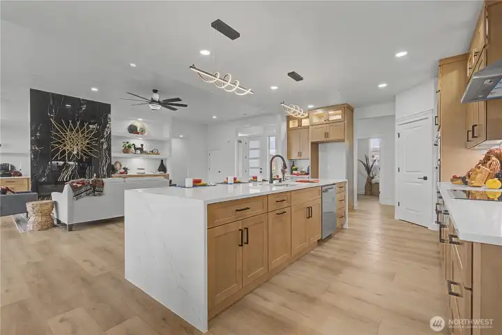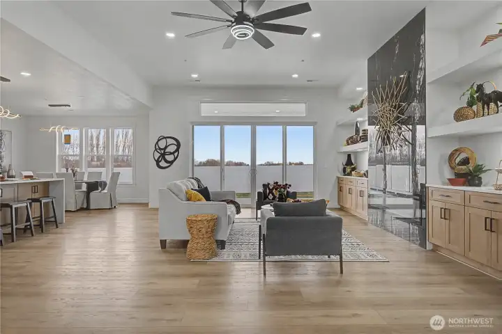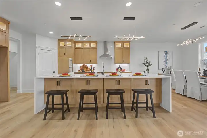 Beautiful custom new construction home on a fully landscaped, vinyl-fenced lot, within city limits yet offering a country feel and lake views. This 2,697 sq. ft. home includes 3 bedrooms, 3.5 bathrooms, and a flex room perfect for an office or guest space. The kitchen features quartz countertops, stainless steel appliances, a waterfall island, and a full quartz backsplash. The living area offers a large electric fireplace with tile, modern lighting, and custom closet shelving. The primary suite includes a walk-in tiled shower and a large walk-in closet, plus an in-law suite with its own bathroom. For convenience, this home offers a laundry room with sink and cabinetry, garage-entry storage, and a 3-bay garage with RV bay.