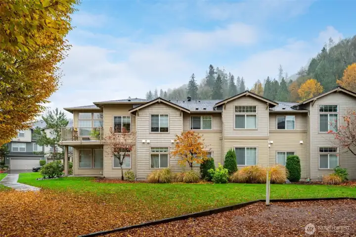 River Valley Condominiums in Renton! This rarely available one-of-a-kind floor plan is a true find. Thoughtfully maintained, this 1-bedroom, 1-bath townhome offers 801 sq. ft. of comfortable living. The spacious garage provides plenty of storage for your car—and all your toys! Upstairs, you’ll love the cozy gas fireplace, private patio, and kitchen featuring a stainless-steel refrigerator and microwave. Set within a peaceful, nature-filled community, this robust HOA offers two playgrounds, a picnic area, nearby walking trails, and plenty of shopping and entertainment right at your doorstep. Don’t miss your chance to see this charming home!
