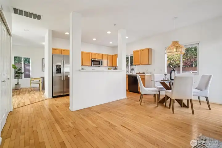Nestled at the end of a private community, this well maintained home awaits you! Featuring a main bedroom with 5-piece bath, 2 additional bdrs w/shared bath. Oversized bonus/4th bdr provides plenty of possibilities. Open concept kitchen w/breakfast bar, granite countertops, & SS appliances including newer refrigerator, & range. Ample light & bright finishes, sky high ceilings & spacious layout, & a fully fenced private BY. Additional features include new roof, washer, & ample parking. Embrace trailside magic & envision biking the 19-mi Green River Trail from your door. You'll adore Van Doren's Landing Park w/playground, pickleball, wetlands wildlife, grills & trails. Easy access to via I-5/SR 509. Your gateway to PNW paradise—welcome home!