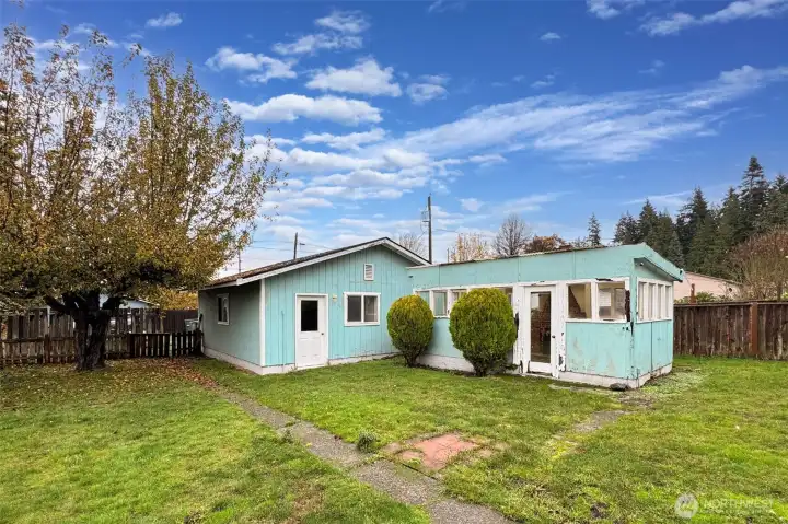 GREAT OPPORTUNITY! UNIQUE HOME NEAR TOWN - READY FOR YOUR IDEAS. Charming property offers an excellent chance to create your dream living space. This home is a blank canvas just waiting for your personal touch. Heavy lifting on essential updates already done, featuring newer roof & recently installed electrical panel, providing peace of mind & a solid foundation for your vision. Beautifully updated bathroom adds modern comfort & appeal. Partially fenced yard ideal for pets, gardening, or outdoor relaxation. Outbuilding waiting for your imagination—perfect for a workshop, studio or extra storage. Newer 2-car garage accessible off alley. Don't miss this rare chance to bring your creative ideas to life & make this unique house your home!