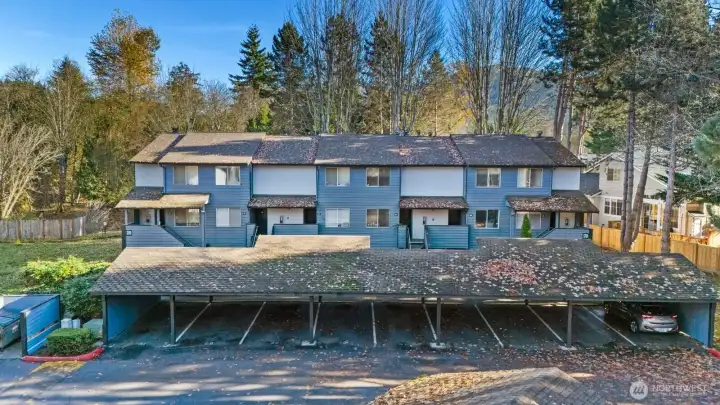 Live steps from shops, dining, and coffee in vibrant Olde Town Issaquah, with quick access to I-90 and award-winning schools. This spacious 2-bedroom, 1.5-bath townhome style offers comfort and convenience. Both oversized bedrooms and feature custom closet shelving. Two private decks each include their own storage closets. Enjoy peace of mind with recent updates to the building: new roof and exterior paint (2021), and fresh interior paint, and new carpet upstairs, fixtures, new dishwasher. Minutes to Salmon Hatchery or watch them from the creek on the unit decks. Pre-inspected, FHA and VA -approved complex with no special assessments. HOA dues cover water, sewer, garbage and common area maintenance. A rare find in such a prime location!