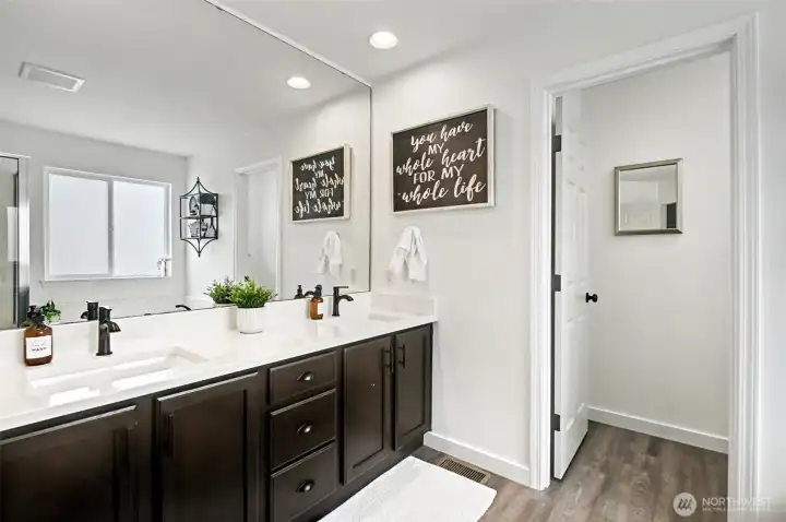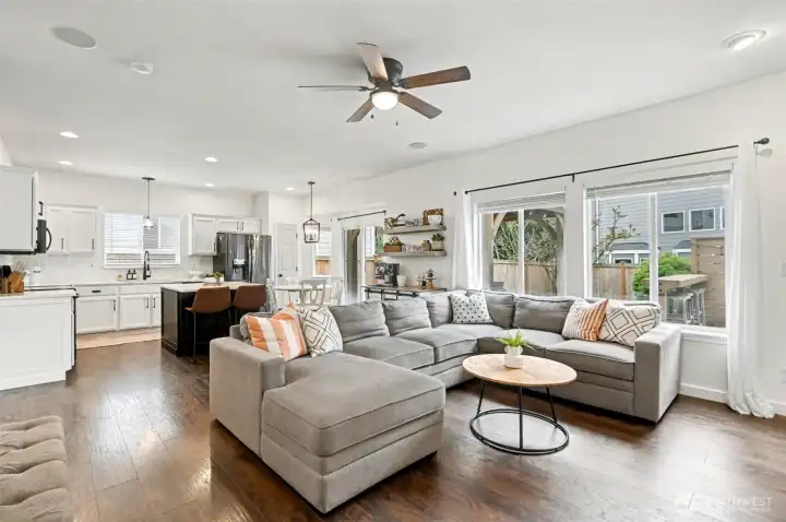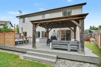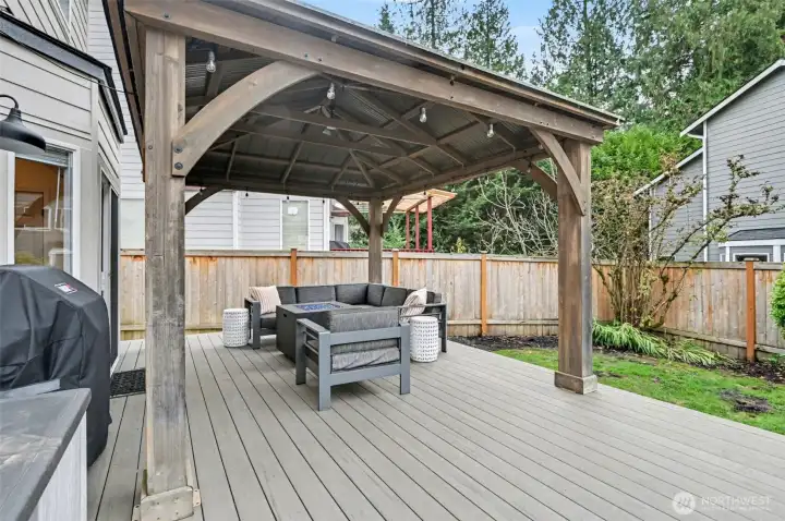 Meticulously maintained 4-bedroom + den, 2.5-bath home offering timeless design, thoughtful upgrades, and an exceptional indoor-outdoor lifestyle. Over $75K in recent improvements include a newer roof, fresh interior/exterior paint, new carpet, laminate main floors, LVP baths, quartz counters, updated lighting, and black stainless steel appliances. The open, functional layout is ideal for everyday living and entertaining, featuring a versatile den/office, spacious great room with a gas fireplace, built-in speakers, and abundant natural light. The kitchen opens seamlessly to dining and living areas for easy gatherings. Upstairs features all bedrooms with walk-in closets, plush new carpet, updated baths, and a convenient laundry room. The primary suite offers bay windows, dual sinks, quartz counters, and a generous walk-in closet. Outdoor living shines with a low-maintenance composite deck, gazebo, turf side yard, sprinklers, and a 7-person spa. Additional highlights include A/C, two gas fireplaces, a mudroom with a utility sink, and storage under stairs. Experience the best of the Pacific Northwest lifestyle in Mill Creek—known for lush parks, 23+ miles of scenic trails, award-winning Town Center dining and shops, top-rated schools, and easy access to I-5 and I-405 for commuting or weekend adventures.