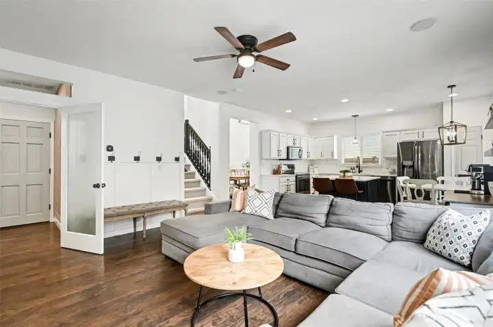This meticulously maintained 4-bedroom + den, 2.5-bath home shines with over $75K in upgrades and thoughtful details! Enjoy new carpet, roof, and fresh interior/exterior paint, plus quartz counters, updated lighting, and sleek black stainless steel appliances. The main floor features laminate flooring and elegant trim work, while upstairs offers LVP baths and a convenient laundry room. Outdoor living is a dream with a composite deck, gazebo, 7-person spa, turf side yard, sprinklers, and A/C. Extras include built-in speakers, two gas fireplaces, bay windows, and a mudroom with a utility sink. Located near parks, sports courts & amenities—this home truly has it all! All Bedrooms have walk-in closets and storage under stairs.