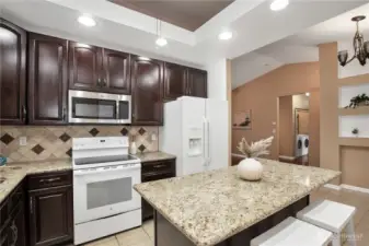 Welcome home to this beautifully maintained 3-bed, 2-bath gem featuring stunning Brazilian HW floors in living room & hallway, newer interior paint, ceiling fans in every room & a new furnace ensure comfortable living no matter the season. The kitchen shines with granite counters, a stylish backsplash, newer cabinets & appliances & new garbage disposal. Dining area is located just off the kitchen with built-in shelving adding character & extra storage. Thoughtful updates blend functionality with a cozy ambiance, making this home ready for your next chapter. Step outside to relax on the fully screened covered porch or entertain in the fenced backyard with a covered patio—perfect for Northwest living! All appliances stay. Close to JBLM.