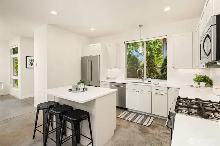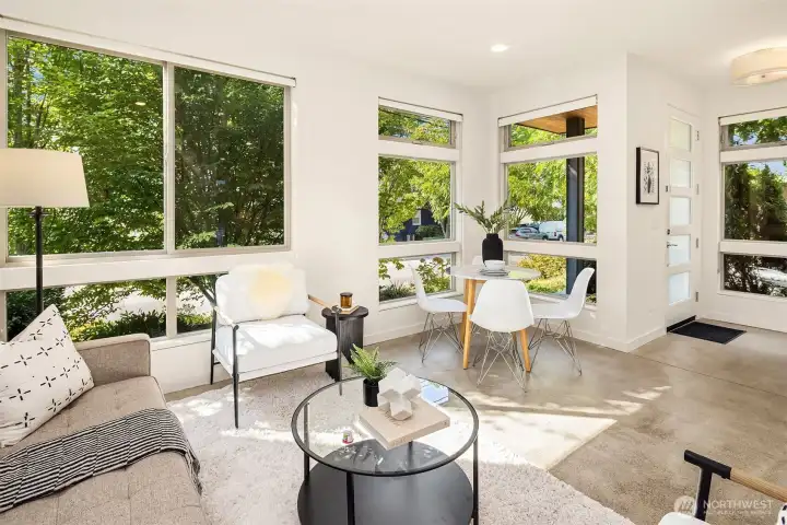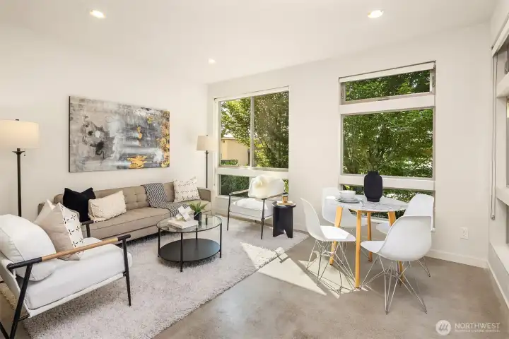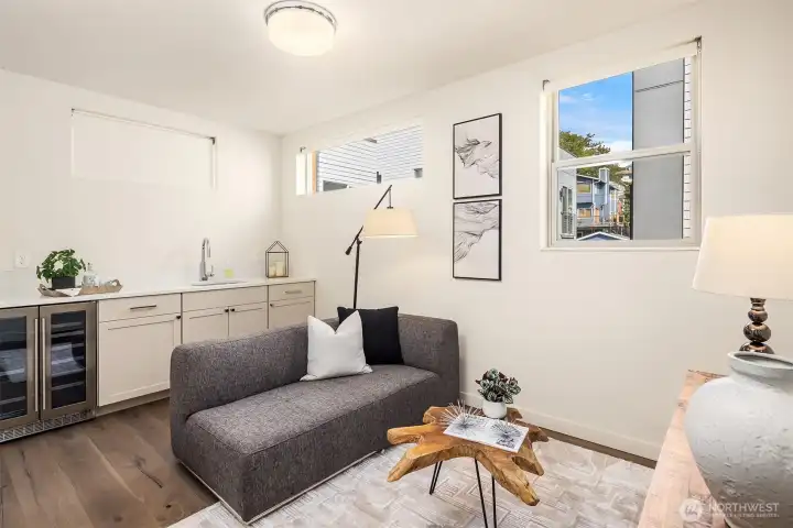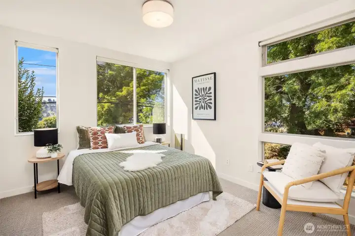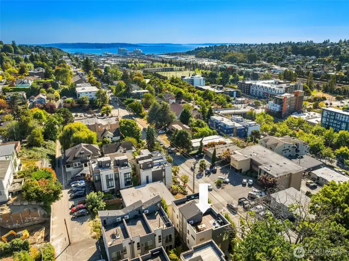 Living made easy! With the turn of a key, this stunning 3 bedroom home can be your sanctuary from the world outside. Set on the western slope of Queen Anne with stunning views of the Olympics, Puget Sound & all points west, this home is ready for YOU! From the moment you enter, floor to ceiling windows envelope you in light. A smartly appointed kitchen boasts gas cooking, quartz countertops & space to gather. Upstairs, you'll find generous bedrooms, including a primary en-suite with a HUGE walk-in closet. Enjoy a cool, flex space with a wet bar; perfect for an office, media center or yoga/play room. The creme de la creme is the massive roof top deck, perfect for fabulous, sunny or starlit entertaining. Minutes to SPU, shops & restaurants!