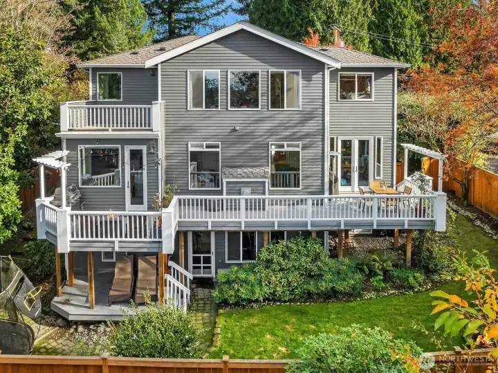 Beautifully remodeled Kirkland home on a quiet dead-end street, offering mountain views & stunning sunsets. The dramatic 2-story entry welcomes you into a spacious layout w/ 5 bedrooms, 4.25 baths, an office, & an upper-level loft/flex area. The chef’s kitchen has been thoughtfully redesigned w/ a banquet-style dining nook, large island, & premium finishes.Enjoy gorgeous hardwood floors, high ceilings, custom built-ins, & a generous entertainment deck overlooking the fully fenced backyard. The home also includes a legal ADU w/ its own private entrance—ideal for nanny quarters, or rental income. A separate bonus room and wine cellar complete the basement level. Lake WA schools, close to DT Kirkland, easy access to 405. An exceptional home!