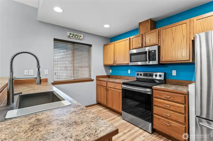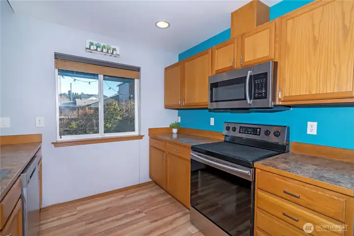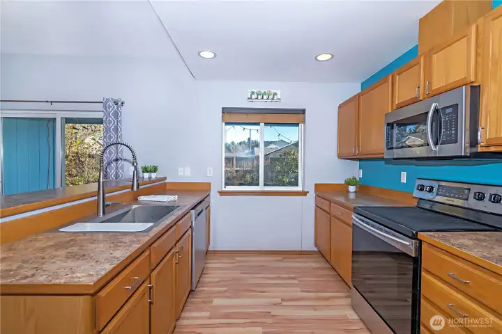 Modern single-level living just north of downtown Ellensburg with no HOA fees! This updated home offers easy access to public transit and the university. Enjoy an open layout with a refreshed kitchen featuring maple cabinets, new stainless appliances, and an eating bar flowing into the dining area. Both bathrooms have been updated, and the large primary bedroom includes a private full bath. All-new appliances stay, washer and dryer included, and Ashley furniture and the TV are negotiable. With 3 bedrooms, 2 baths, and a 2-car garage, this home blends comfort and convenience.