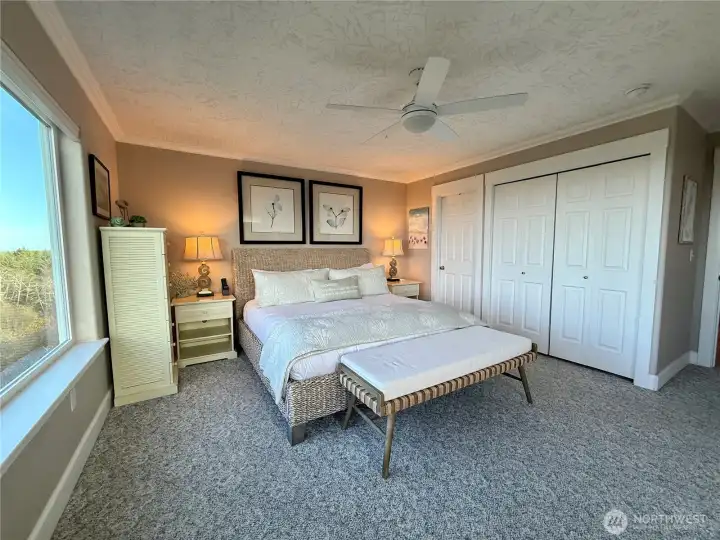 Exceptional view from this south end unit with windows that embrace the moods of the Pacific Ocean. The sweeping view can be seen from almost every room in this impeccably maintained condo. From the moment you arrive at the property you are treated to the beach and its vibe. There is a calming - kick off your shoes and enjoy, atmosphere throughout the open kitchen, dining rm and living area all of which are very well appointed. Upstairs hosts the Primary suite with the unobstructed ocean, is unbeatable, this floor has second bedroom, a bathroom and the utility room. Being sold fully furnished including fully appointed kitchen. Quiet location, close to to Long Beach! currently has vacation rental permit (not transferable)