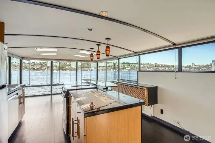 Welcome aboard this stunning 2-bedroom Seattle Houseboat ~ one of Seattle's original City Registered Housebarges. Located on a desirable outer deck with a leased slip and incredible, unobstructed Lake Union views. Upper level features grand artistic pillars, a wall of windows, open concept living , kitchen with granite counters, & beautifully refinished floors. Relax on the water and enjoy stunning sunrises, seasonal fireworks, boating, kayaking, & peaceful nights. Minutes to Google, Adobe, Amazon, Fremont Market, dining, transit, & light rail. Hauled out & pre-inspected in June 2025. Moorage includes utilities for $1,250/mo. Financing available. RPZ off-street parking included. Pets OK. Come & enjoy life on the water!