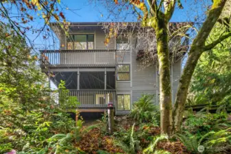 Modern & bright 4 bedroom home on a quiet, private cul-de-sac w/ peaceful wooded views as if living in a luxury treehouse! Finishes include dark bamboo flooring in the main living areas, light LVP in the lower level, quartz countertops, SS appliances, gas fireplace insert & fresh paint. Entertain guests w/ the open concept kitchen flowing into the living room or work from home w/ the convenience of a separate secluded lower work area. Utilize the lower level family room for work, movies, games or entertaining! Features TWO primary suites (upper & lower level), walk-in closets in the bedrooms & THREE DECKS overlooking the spacious private backyard! Northshore Schools, 10 min. drive to downtown Bothell & 7 min drive to Lake WA parks & trails!