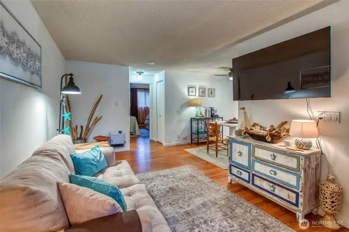 MOVE-IN READY EASTSOUND CONDO Discover the most affordable residential option on Orcas Island—this charming one-bedroom Driftwood Condominium just outside Eastsound village. Freshly painted and sold fully furnished, it offers a cozy living area, eating nook, and easy access to restaurants, shops, the waterfront park and more. Enjoy on-site laundry, a new roof, and nearby trails into town. One dedicated parking spot. Reasonable dues cover water, sewer, garbage, snow removal and common area maintenance. Long-term rentals allowed with HOA approval.
