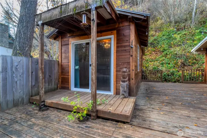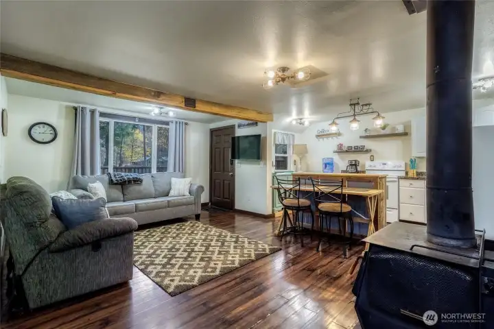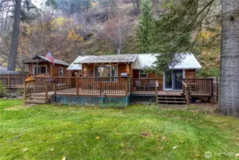Discover a peaceful retreat up Kooskooskie Road at 48 Blue Jay. Just 15 minutes from Walla Walla, this fully furnished cabin offers the feeling of being worlds away. The main cabin features an open living area with a wood-burning stove, warm wood finishes, updated lighting, and a functional kitchen with a spacious island perfect for gathering. The primary bedroom is located in the main cabin, while the detached bunkhouse provides a second bedroom ideal for guests, hobbies, or a quiet workspace. Enjoy expansive decks, a fire pit area, and a private yard surrounded by trees and hillside views. There is no cell service, allowing for true relaxation, but internet is available when needed. A great opportunity to own a Mill Creek retreat.