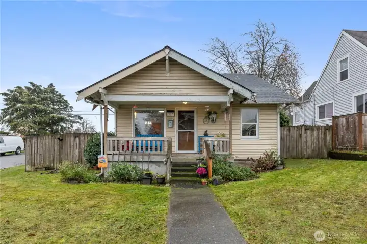 Welcome to this charming 4 bed/1bath South Tacoma home on a spacious corner lot! Thoughtfully updated for comfort and efficiency, this property features original millwork & hardwood floors, a newer roof, updated electrical throughout, and Milgard double-paned windows for improved insulation and peace of mind. Enjoy energy savings with solar panels installed in 2020. The bright, open layout provides great natural light, and the detached garage offers additional storage or workspace. Conveniently located near parks, shopping, and commuter routes—this home blends classic charm with modern upgrades.