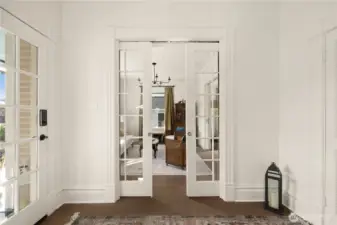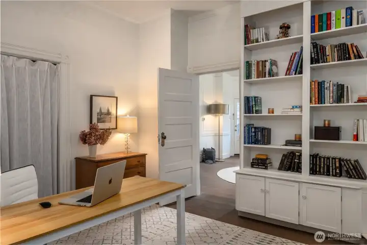Beautifully updated 1905 historic home on a shy half-acre bordered by Barber Creek. This spacious 3BD/3 bath (1- Full, 2- 3/4 baths) +Office (with closet and skylights) blends original charm with a newer thoughtfully designed addition. The home offers a main-floor primary suite, large walk-in closet and inviting library with fireplace. A huge family room, dining room and kitchen make for exceptional entertaining space. Ten+ foot ceilings throughout bring incredible volume to all the main rooms. A newer (circa 1997) 2-car garage includes a large attic —perfect for storage or...? Ideally located near Menlo Park and close to Whitman College and vibrant DT Walla Walla, this home offers character, comfort, and unmatched convenience.