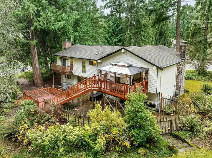 Tucked away in the desirable Wingate neighborhood is your own private retreat on over half an acre. The entry opens up to vaulted ceilings in the living and dining room with a walk-out to your own backyard oasis with 2 ponds. The upper level features a primary suite with sitting area and expansive closets plus 2 additional bedrooms. Downstairs you’ll find a great room plus another bedroom-perfect for guests or an office. The massive garage has covered parking for 4 cars, or use the fully-wired shop space with heating for all of your hobbies. Wander through the mature landscaping on community trails and enjoy riding bikes on quiet roads. Close to excellent Mukilteo schools, shopping, Boeing and Edmonds.