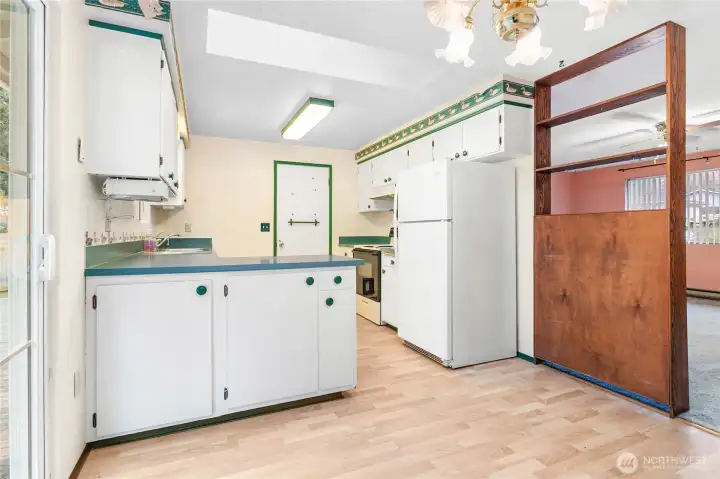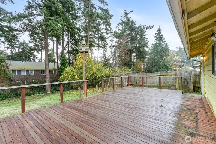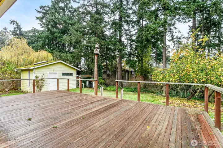A great opportunity to build instant equity at an affordable price! This 3 bed, 1.25 bath rambler features a functional layout with a half bath off the primary bedroom. The living, dining, and kitchen areas flow together in an open concept design, with a slider off the dining room leading to a large back deck. Enjoy a private, fully fenced backyard with a spacious stick-built shed/shop with power, potential for an ADU, plus a mature apple tree for added charm. Move in and update at your own pace or take on a full remodel. Home includes an attached single-car garage, driveway, and off-street parking. Terrific location close to schools, NAS Whidbey, restaurants, and shopping. Vacant and ready for a quick close—move in before the holidays!