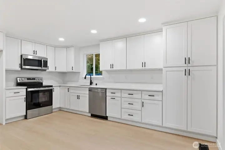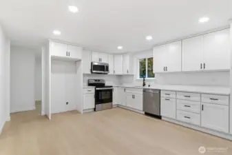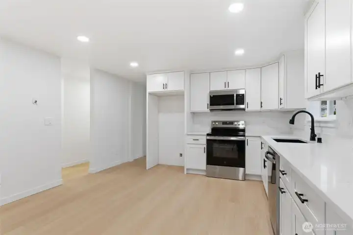 Welcome home to this fully remodeled rambler featuring a brand-new kitchen with quartz countertops, cabinets, and stainless steel appliances, plus two updated bathrooms with modern tile and finishes. Fresh flooring, paint, trim, and lighting run throughout, giving every room a crisp, updated feel. Enjoy comfortable living and dining spaces, along with a private primary suite and a large, with a huge patio deck for the summer months. Located close to shopping, schools, and freeway access—this move-in-ready home offers style, quality, and convenience.