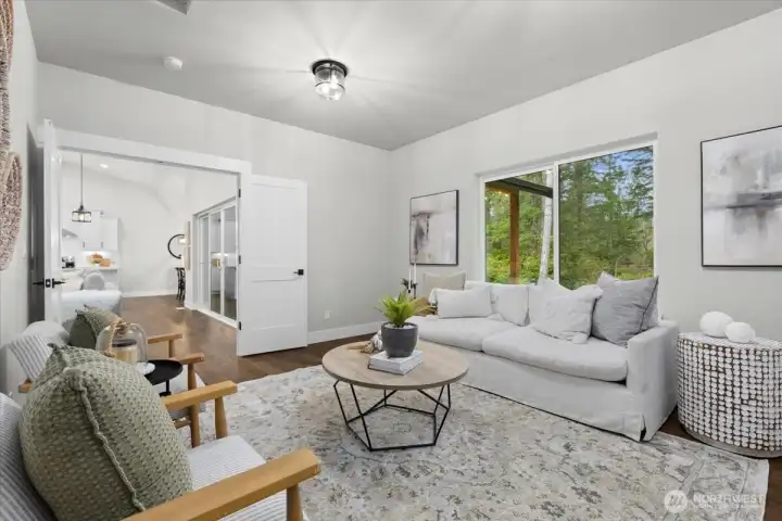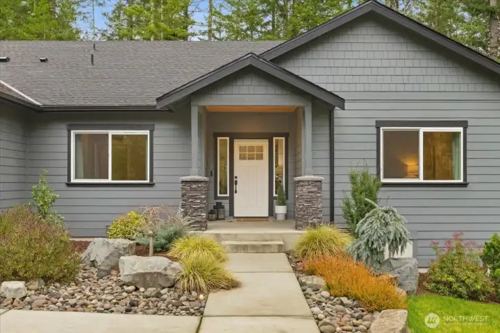 This stunning, like-new rambler home sits on a private, 2.05-acre lot offering the perfect blend of construction and tranquility. This open-concept home features 3 bedrooms, 2.5 baths, a den/office (or 4th bed), and a bonus room – delivering flexibility for every lifestyle. Built for effortless indoor-outdoor living, the home boasts an impressive 12-foot sliding glass door, vaulted ceilings, and a cozy fireplace. The kitchen shines with high-end finishes, ample prep space, and thoughtful details throughout. Energy-efficient upgrades include triple-pane windows, a forced-air furnace w/ heat pump. Enjoy the quiet, will also be minutes to Gig Harbor & a dream location with an easy commute North or South, ferry to Seattle, shipyard/ Naval base.