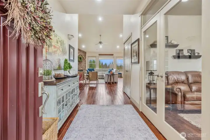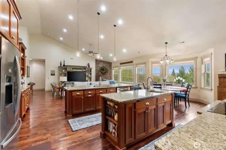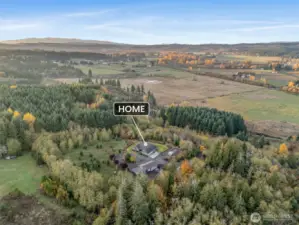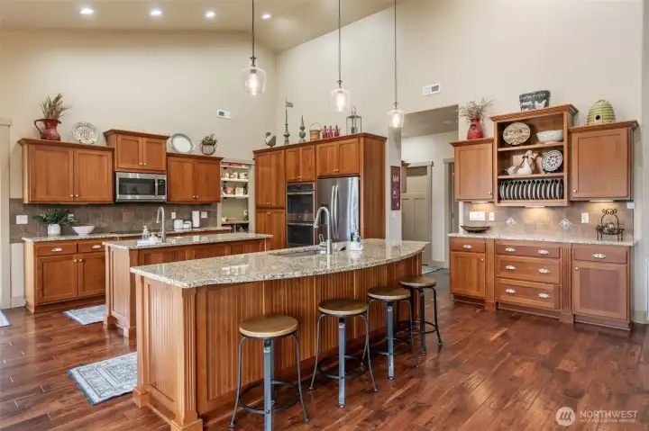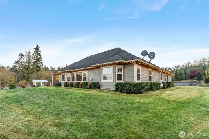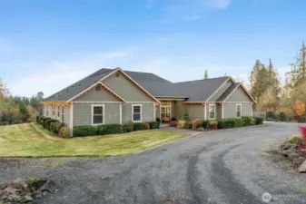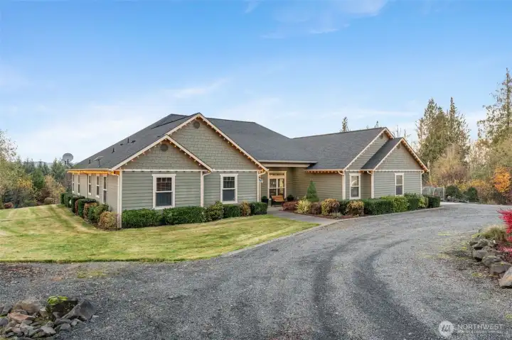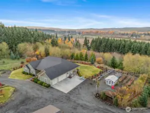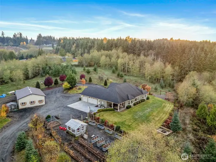 Single level, no step layout custom home on 6 acres w/gated entry & private setting. Vaulted great room w/15’ ceilings, hardwood floors, gas fireplace & built in surround sound opens to entertainers kitchen w/cherry soft close cabinets, slab granite, 2 large islands, SS appliances & butlers pantry. Primary suite w/heated bath floor, double sinks, spa tub, tiled shower & large walk in closet. Laundry room w/granite counters & deep sink. Deep 3 car garage plus heated finished shop w/concrete floor, hot/cold water, separate 100amp service & 4 bay covered parking. Covered patio overlooks landscaped yard, fire pit, greenhouse w/heat & water, raised beds w/fruit trees & berries, phone controlled irrigation, artesian well, & full security system.