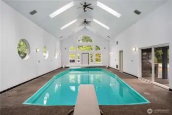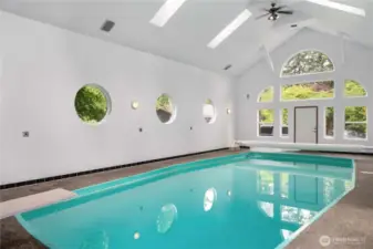 The ultimate PRIVACY is found here with your own 4 acre GATED resort w/ nature. Open living concept kitchen & family room in a WHEELCHAIR friendly home throughout w/ ELEVATOR serving all floors. INDOOR POOL for YEAR round enjoyment w/ air quality control and access out to covered barbecue/dining area. Upper floor holds primary w/ double closets; attached bath & views of the grounds and pond in the distance. Lower level holds craft/hobby room; 2 more bedrooms and hall bath; also an OUTSIDE entrance. Detached garage w/ STUDIO space; official sized pickle ball court; gardens and space to stretch. NEW HVAC/AC; New Pool equip; well maintained and updated systems. Proximate to JBLM, shopping, dining, across base highway & truly unique.