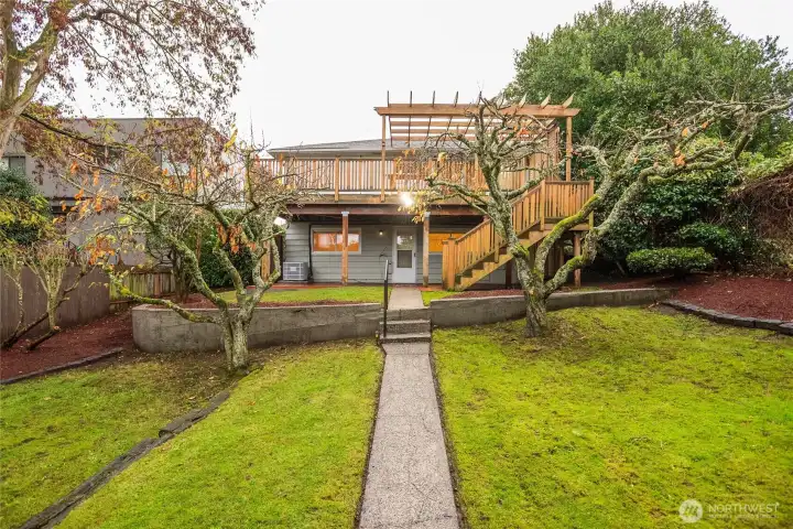 Nestled on a 6,000 SF lot this solid 1961 home with northwesterly views over the Ship Canal will inspire your personal touch to bring it to back to life. Mature landscaping provides privacy and delightful fruit trees, making outdoor relaxation a treat in the yard or on the deck. A wall of west facing windows lights up the main living space, dining area, and kitchen, featuring original hardwood floors. Two bedrooms and a roomy bath complete this level. Downstairs, a daylight basement with patio and backyard access includes a spacious rec room, bedroom, and full bath. The garage with shop space, plus unfinished storage, offer endless possibilities. It's a quick hop to Ballard, Magnolia, Fremont, SLU, and top of QA—uncover your dream home!