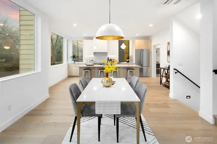 Modern living meets refined craftsmanship in this boutique 3-home community in the heart of Madrona—steps to local shops, parks and cafés. 806 offers four spacious bedrooms or use the lower level as a flex space.Your primary suite features a walk-in closet, dual vanity and an elegant tiled bath. The kitchen showcases a substantial island, high-end Bosch appliances and a butler’s pantry. The attached garage is EV-ready. Enjoy outdoor space in the fully-fenced front yard or atop the roof deck framing Lake Washington and Cascade Mountain views. Elevated details include radiant-heated bathroom flooring, recessed mini-splits, and ambient accent lighting throughout.