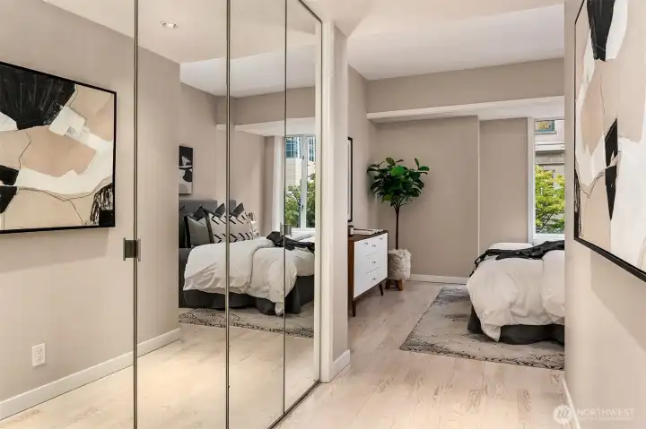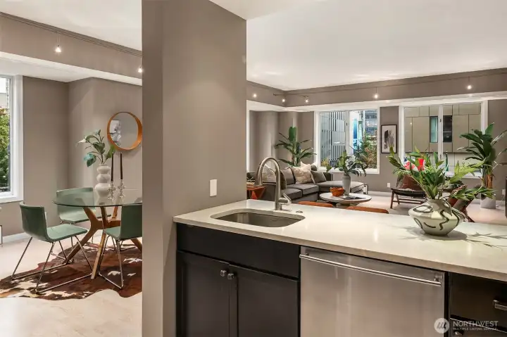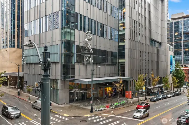 Live at the center of it all! This rare SW corner residence sits just steps from the Seattle Art Museum, Four Seasons Hotel, Pike Place Market & the new Waterfront Park. Designed by Olson Sundberg Kundig Allen Architects, this 98 Union home blends iconic Seattle architecture with modern ease. Soaring ceilings, hardwood floors & walls of windows fill the space with natural light & partial views of Elliott Bay & the Great Wheel. The updated kitchen features quartz countertops, stainless appliances & ample storage. A serene main suite includes heated floors & California Closets. Enjoy 1.5 baths, full-size W/D, parking, storage & concierge. HOA covers all utilities plus internet & cable. Ask about the building’s secret Market entrance!