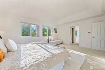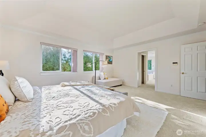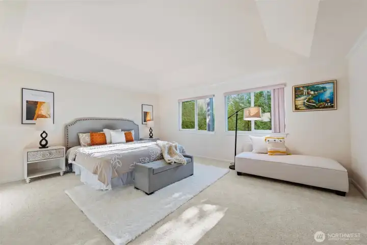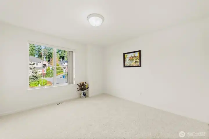 Hidden gem in a peaceful Bellevue neighborhood with quiet cul-de-sac setting. Walkable to Crossroads mall, Hillaire park & Larsen Lake. This 3000 feet contemporary house blends light, family life & convenience. Entire interior has fresh painting and new carpet. Soaring living room with a vivid fireplace opens to formal dining area. An open concept gourmet kitchen with lots of cabinets, central island, newer refrigerator. Huge family room connects a big nook to the kitchen. Upstairs 4 bedrooms and 2 full baths & a cozy loft. Flexible office can be the 5th bed in main floor with extra 3/4bath. Two gas fireplaces, Three car garage, Huge deck, Private back yard. Closed to Microsoft, shops, transit, freeway. Quiet neighborhood, Bellevue Schools.