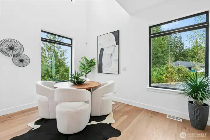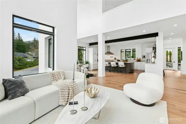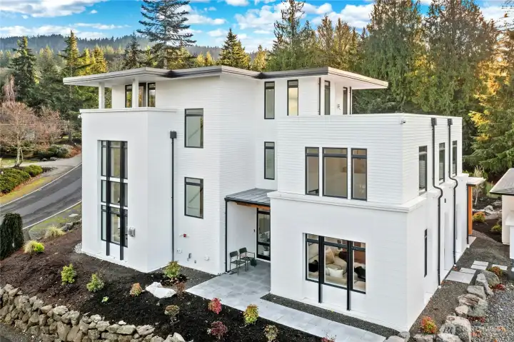 Soak in the extraordinary VIEWS from this contemporary-mountain-home atop Squak Mtn. No expense spared in the construction of this 2023 build at Forest Rim. Blank canvas ready for your customization. Dbl-wall, steel & beam construction, soaring 30' ceilings & massive window walls fill this home w/ light. 3-levels of elegant living complete w/ elevator shaft wired/ready for car. 3rd level primary suite offers stunning panoramic & sunrise views, dbl walk-in closets & a reading nook. Generous spaces through provide room to live, work, create & entertain. 1,110 sf 4-car garage 220/EV wiring, Froula camera security, low-water usage landscaping, backing Squak Mtn sanctuary & trail network. Today's re-construction costs would exceed listing price.