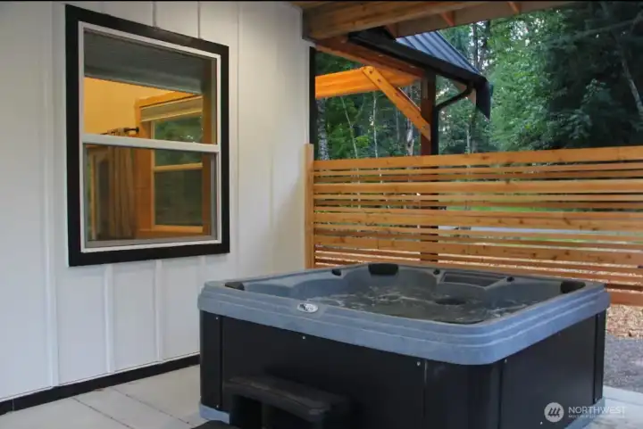 Simply one of the nicest properties in Ashford! Custom built in 2024 specifically as a short term rental, this cabin has every feature and comfort that guests love! Over fifty 5 star reviews on a well-known short term rental platform . The exterior features vast covered patios, expansive gable windows for natural light, a hot tub, and a built in patio heater. The interior features two bedrooms, two full baths with custom tiled surrounds, a statement stone fireplace, and full kitchen. Too many features to list! This cabin is being offered fully furnished as a turnkey STR or vacation home. Host guests from day one after closing!