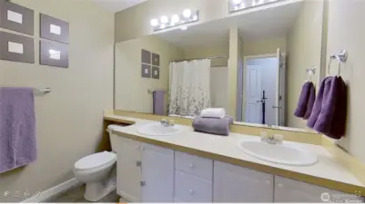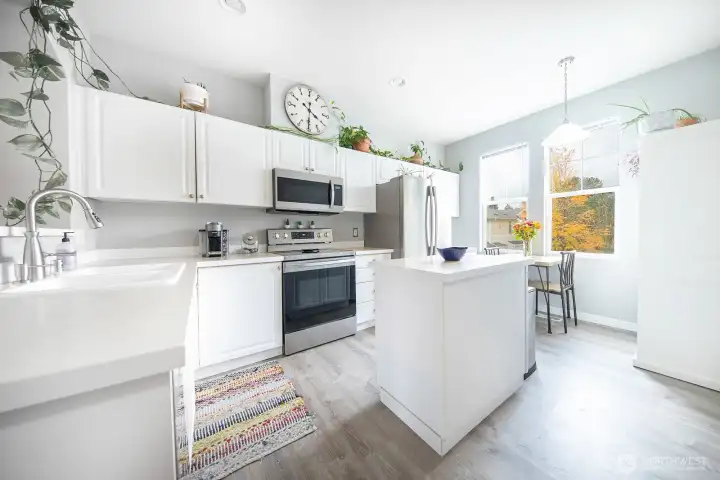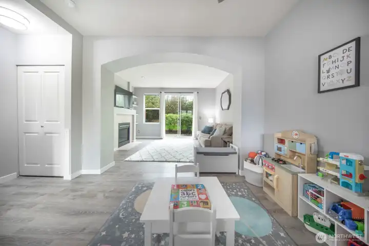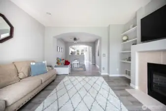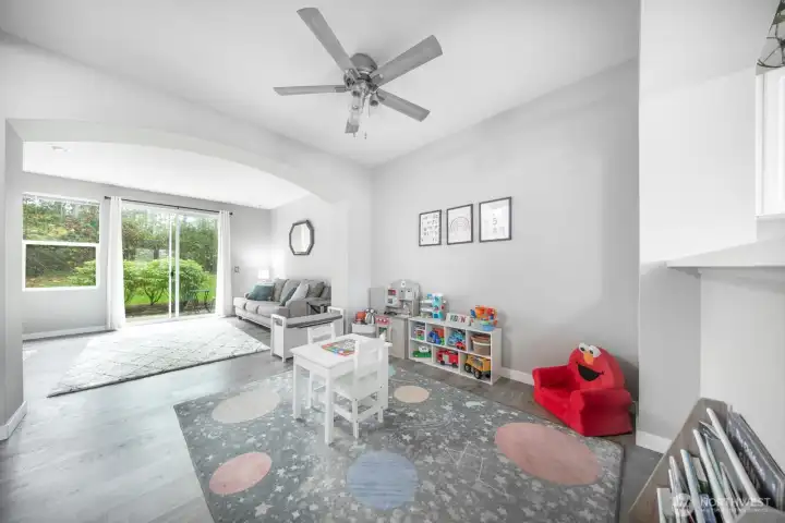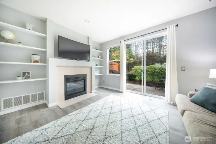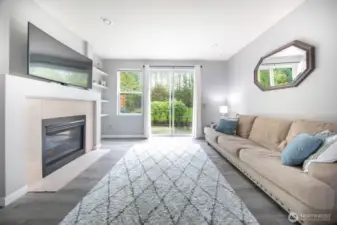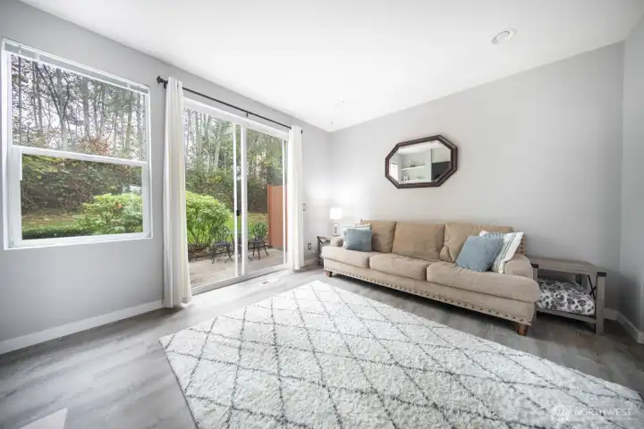 Spacious home in the highly sought-after Ridge at Highlands East! This light-filled residence backs to lush greenery and is just steps from a neighborhood playground. The open-concept main floor features a bright kitchen with breakfast nook, dining area, and living room with cozy fireplace. Slider opens to a private, park-like patio—perfect for relaxing or entertaining. Upstairs offers a primary suite with dual closets, a secondary suite with full bath, and convenient laundry. Two-car tandem garage with abundant storage plus driveway parking. Enjoy gas heat and a beautifully designed community close to top-rated schools, Willis Tucker Park, trails, dog park, and Mill Creek Town Center. A truly special place to call home!