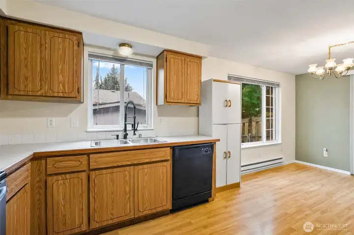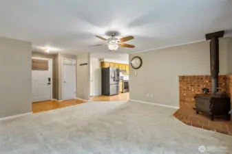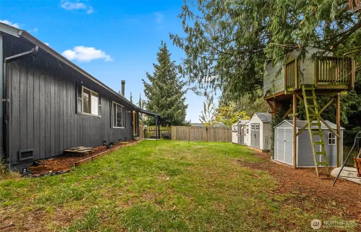 Absolutely spotless rambler is beatifully maintained, shows almost like new. Open floorplan that's light & bright w/ lots of windows, brand new plush carpets, new upgraded vinyl plank floors in both baths, new exterior paint, gutter guards, tasteful decorator colors thru out, F/S woodstove in living room. Very large kitchen w/ newer upscale appliances (incl W/D), sliders to gorgeous private back yard that has 3 high quality shed/workshops. Large garage, huge gated RV parking, lovely landscaping & neighborhood, quiet residential street. Across from nice City park & playground. This home does not disappoint.