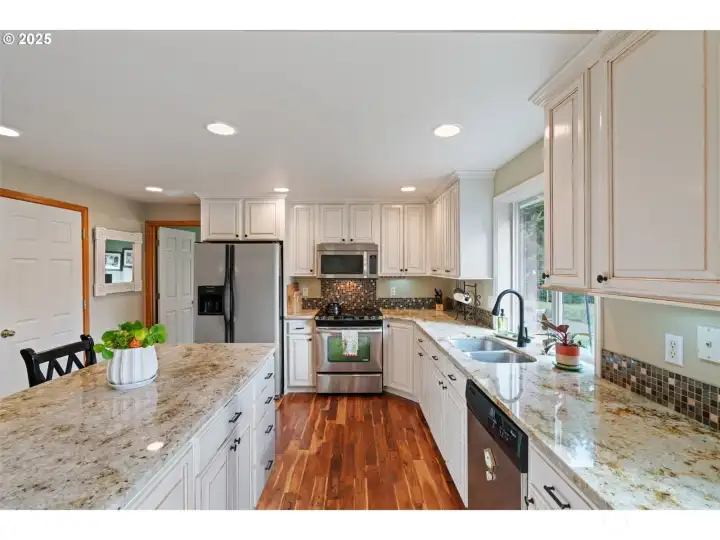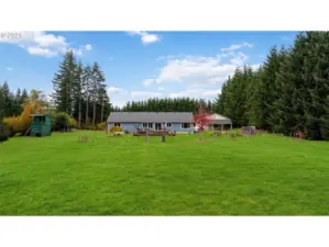 Stunning Brush Prairie estate in the highly-desired Hockinson school district! Nearly 6 acres with mature trees, orchard, wildlife, wildflowers, fenced areas, raised garden beds, and approx 5 acres of private green space with trails. Enjoy true single-level living with vaulted ceilings, hardwood floors, granite countertops, stainless appliances, and a beautifully designed, move-in-ready floor plan. Outdoor living shines with a large stone patio, fire-pit area, and peaceful natural surroundings. Fully-insulated, 3 bay-30’x48’ shop with 220 power — ideal for storage, projects, and equipment. Charming treehouse perch adds a touch of magic for little adventurers. A rare, well-kept country retreat just minutes to town, 30 mins to PDX.