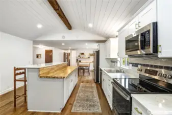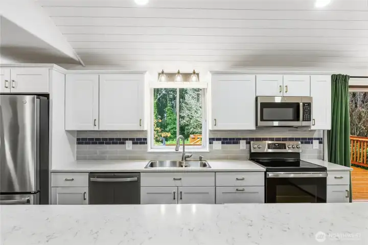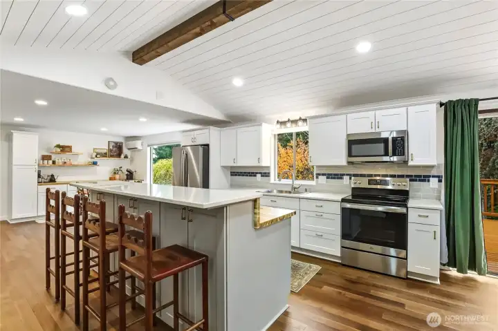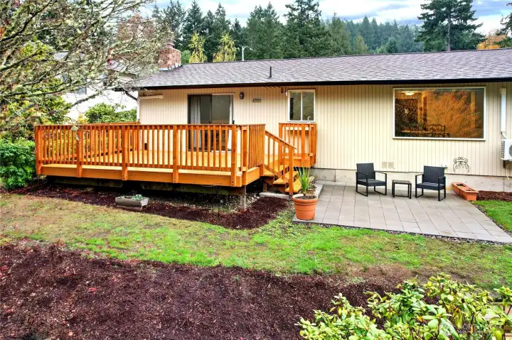 This charming single-level home is filled with stylish updates & warm, inviting spaces. The expansive open kitchen shines with gorgeous finishes, generous cabinetry, & a welcoming breakfast bar, flowing seamlessly through a sliding door to the large deck. The dining room’s picture window & built-ins add character and light, while the private ensuite in the primary bedroom offers a peaceful retreat. Offering 3 bedrooms & 2 bathrooms with all appliances included for effortless living. Outside, the beautifully landscaped, two-tier backyard—with its spacious deck, patio, and generous gathering areas—creates the perfect setting for relaxation or entertaining. All nestled in an established, no-HOA neighborhood just minutes from downtown Poulsbo.