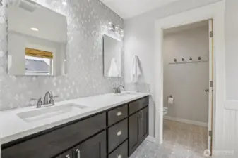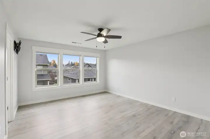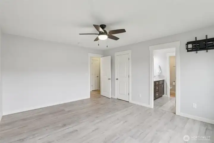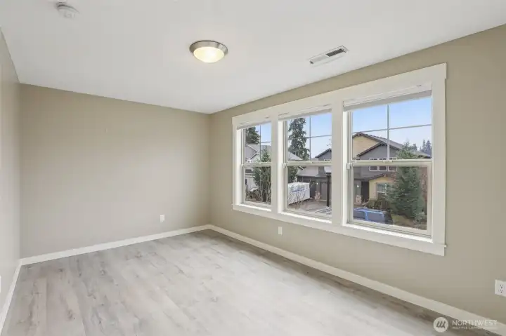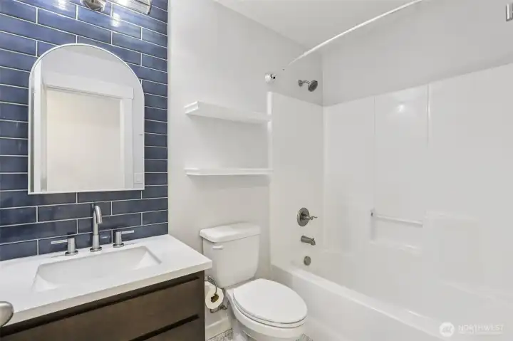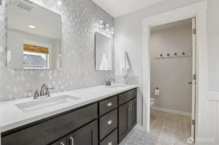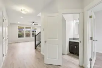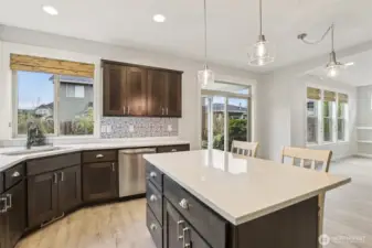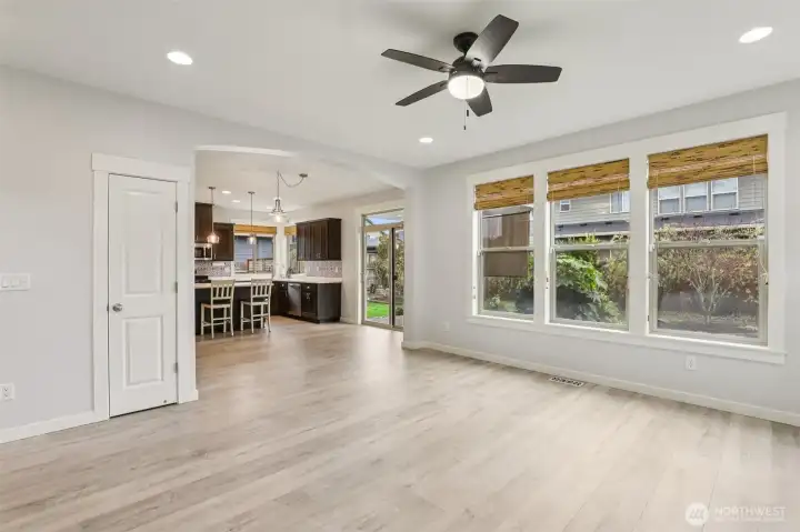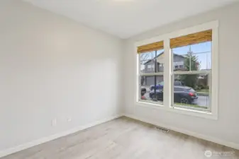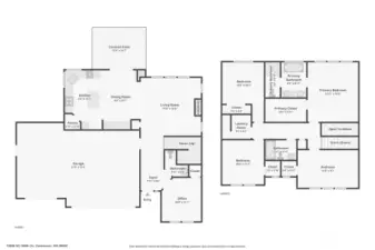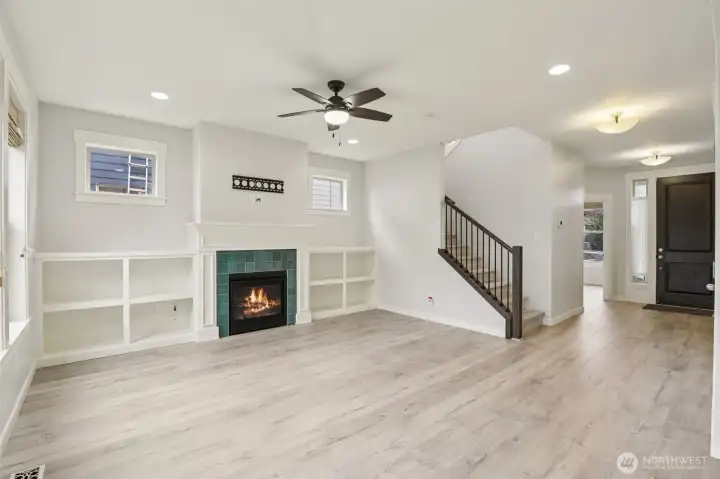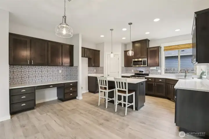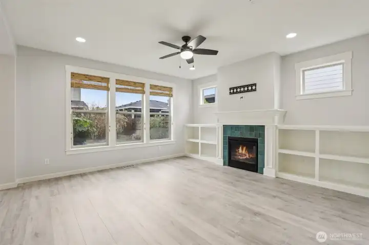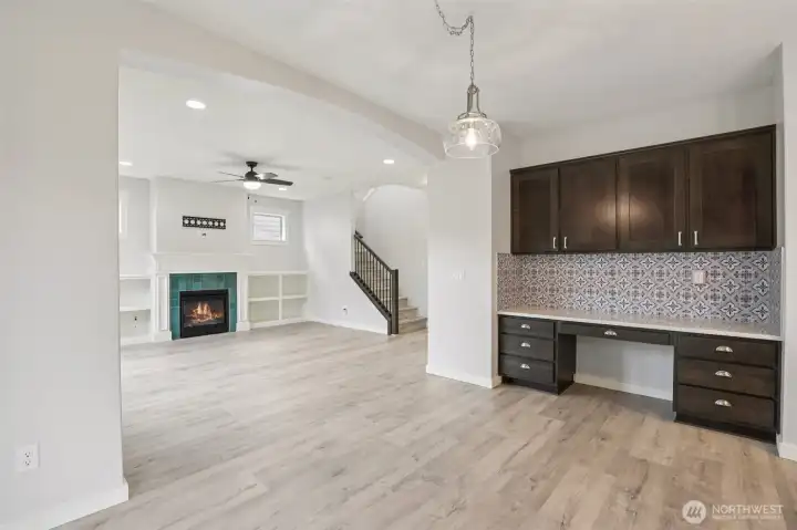 Custom – Not Builder Grade Home! Great room Family room offers a tile-surround gas fireplace, built-ins, clerestory windows, ceiling fan. Gourmet island/eat bar kitchen offers stainless appliances, quartz counters, tile backsplash, abundant cabinetry, walk-in pantry, desk area. Dining area slider to covered patio. Upstairs, primary suite includes walk-in closet, ceiling fan, dual-sink quartz vanity, free-standing tub, tiled shower. Main-level bedroom / den/office adds flexibility. Three additional upper bedrooms, two with walk-in closets. Upper laundry with built-ins. LVP & tile floors. Freshly painted. Landscaped, sprinklers, drip system, covered patio. 3-car garage w/built-ins. Mortgage savings may be available for buyers of this listing.