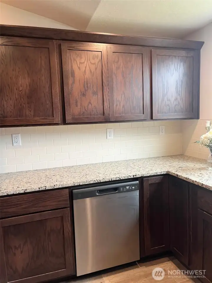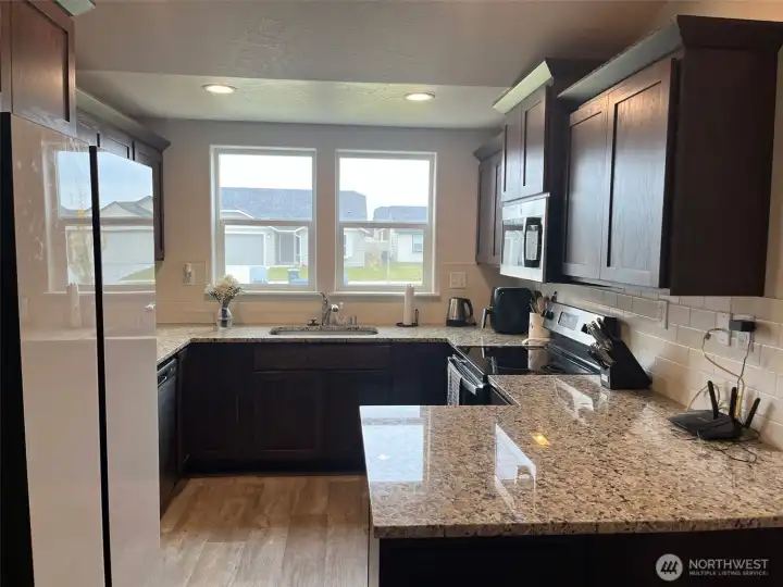 Stunning like-new home with vaulted ceilings in the dining room and living room. Featuring a covered front porch, tile entry, breakfast bar, dining area, great room design with luxury vinyl flooring. The kitchen has granite countertops and stainless-steel appliances. The primary bedroom features dual closets and room for a king-sized bed. The primary bathroom has a dual vanity and a stand-up shower with a modern glass enclosure. One of the additional bedrooms also has a walk-in closet. There is a landscaped front yard with underground sprinkler system and a 2-car garage. Conveniently located, it is minutes from Highway 17, shopping and area amenities.