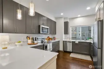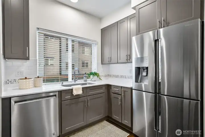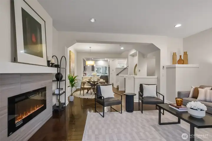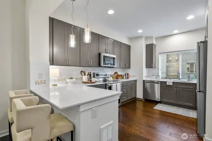 Step into modern comfort w/ this beautifully updated 2-bedroom, 2-bath townhome in trendy 63 Dunbar.Built by luxury builder, Wescott Homes and lives like a single family home.Light and bright great room open living/dining concept with engineered hardwoods,wine bar,new carpet and fresh interior paint. Open gourmet kitchen with upgraded stainless steel appliances and a stylish Kitchen with quartz countertops.Upper level offers 2 primary bedroom suites with walk-in closets, both baths w/ heated tile floors.Great location, near all amenities, dining, shopping, medical facilities, UW Bothell, Cascadia Community College, Edmonds Schools, Burke Gilman Trail. Near public transit centers, I-5, I-405 & Link Light Rail with access to Downtown Seattle!