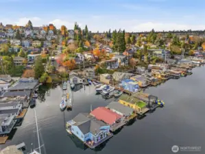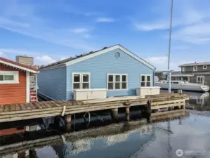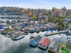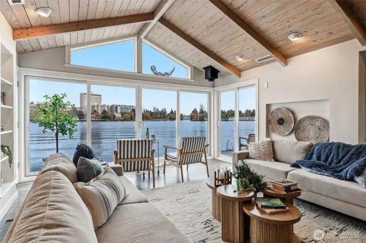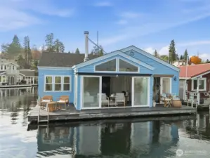 The lake reflects the sky in this light-filled front row floating residence, featuring an expansive living room & open kitchen beneath beautiful vaulted ceilings. A true rarity, this home provides single level living with beautiful wood floors throughout. All 3 bedrooms enjoy views framed by brand-new windows, perfect for watching winter migratory birds & all the water action. Loads of storage including attic access. Enjoy 38 feet of low-bank bulkhead waterfront & 2 outdoor seating areas—including one directly off the primary bedroom. Fresh interior and exterior paint enhance the timeless design by architect Eric Hogeboom. Includes a dedicated boat slip, completing this exceptional waterfront lifestyle.