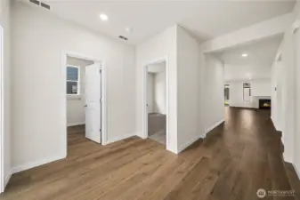 Featuring a thoughtfully designed rambler style layout, the Aurora at McCormick Trails offers ample private and common living space. Toward the front of the home, two generous bedrooms share a full hall bath. A third bedroom—the lavish primary suite—is secluded on the other side of the home and features an en-suite bath and roomy walk-in closet. Additional highlights include a spacious great room that flows into an elegant open dining area—with access to a covered patio—which overlooks a well-appointed kitchen boasting a center island and corner pantry. Buyer's Broker must accompany &/or register Buyer at 1st visit.