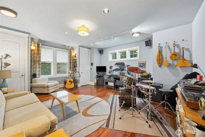 Big guest room with hardwood floors