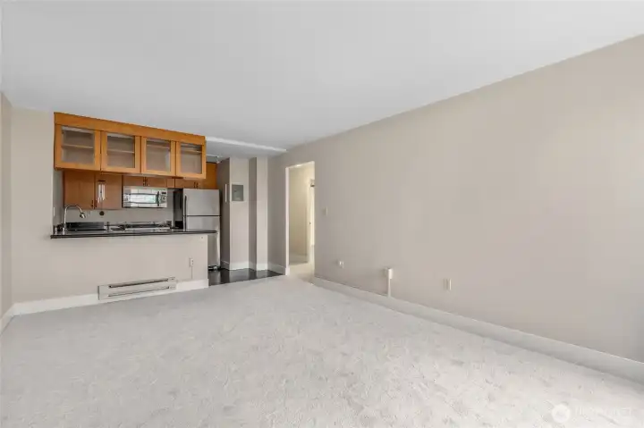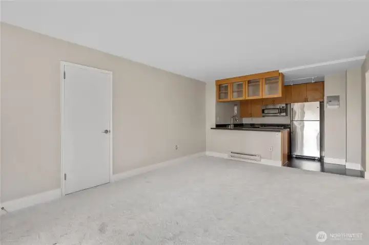 A rare south-facing First Hill condo with fresh updates, abundant natural lighting, and ample storage. This spacious 1-bed, 1-bath, offers a bright living/dining area and an efficient kitchen with granite counters, cherry cabinets, SS appliances, new paint, updated carpets and is move-in ready. Classic hex-tile bath with porcelain tub. Architect-designed concrete and steel construction with a rooftop deck showing city views. Pet-friendly, no rental cap, 1st-time buyer incentives, bike storage, free basement and same-floor laundry, and a full-time concierge. Car-free living along tree-lined streets near cafés, shops, groceries, hospitals (Virginia Mason, Swedish Hospital), Seattle University, and transit—comfort and convenience all in one.