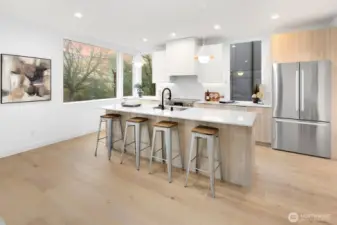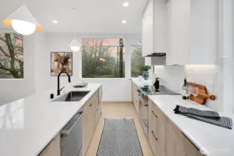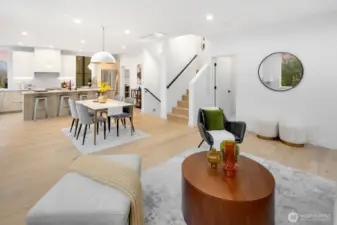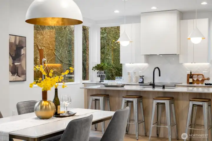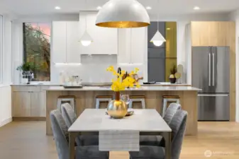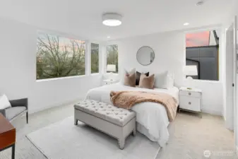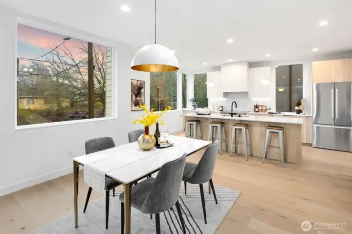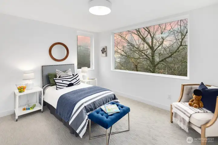 Modern living meets refined craftsmanship in this boutique 3-home community in the heart of Madrona—steps to local shops, parks and cafés. 806 offers four spacious bedrooms or use the lower level as a flex space.Your primary suite features a walk-in closet, dual vanity and an elegant tiled bath. The kitchen showcases a substantial island, high-end Bosch appliances and a butler’s pantry. The attached garage is EV-ready. Enjoy outdoor space in the fully-fenced front yard or atop the roof deck framing Lake Washington and Cascade Mountain views. Elevated details include radiant-heated bathroom flooring, recessed mini-splits, and ambient accent lighting throughout.