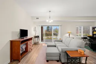 Discover Puyallup’s newest 62+ senior co-op community! Members own impressive amenities including a woodshop, hobby room, fitness room, raised garden beds, onsite storage units, reservable guest suite, and a heated garage with EV charging, car wash, and bike racks. Situated in a quiet wing away from street traffic, this desirable main-floor unit features 2 bedrooms, 1¾ baths, a spacious open layout, large walk-in closets, ample storage, and a patio. Common areas also offer a mailroom, gas firepit, library, full kitchen, bar, and patio grills. Monthly fees cover master mortgage, taxes, insurance, landscaping, repair & maintenance, utilities, office staff, reserves, & more. You also receive a tax deduction for your portion of tax & interest.