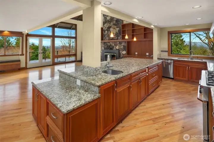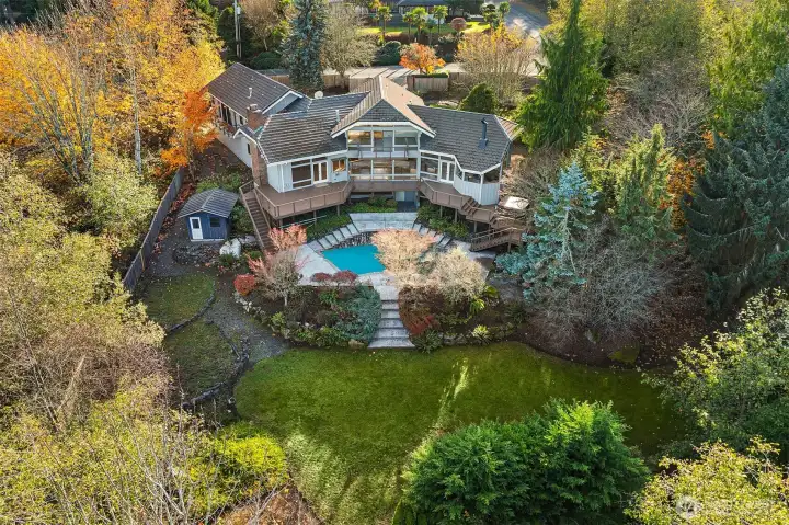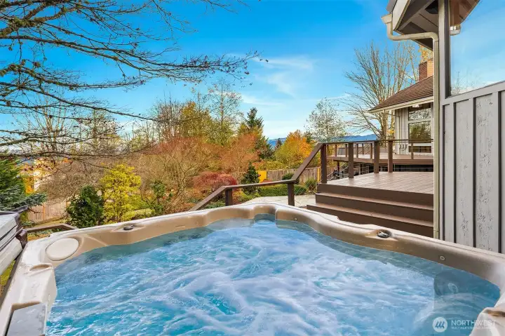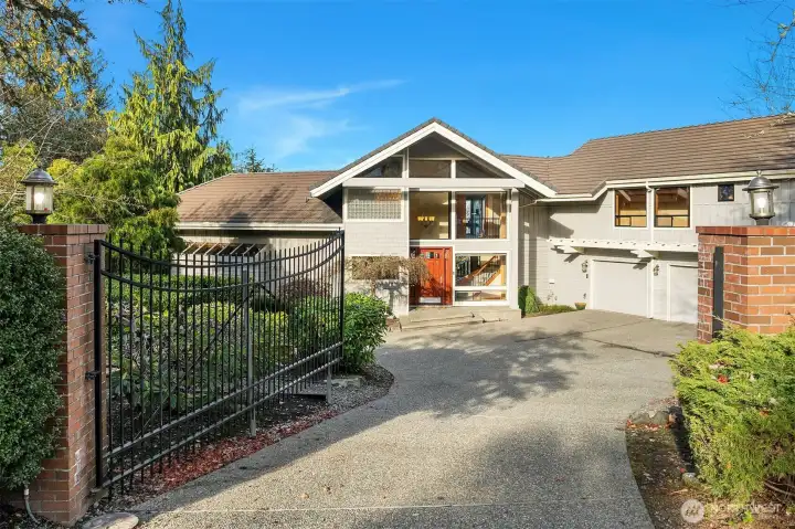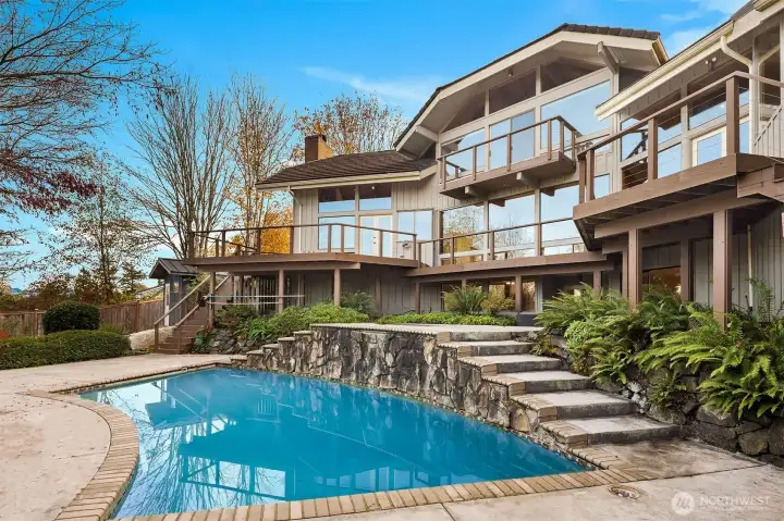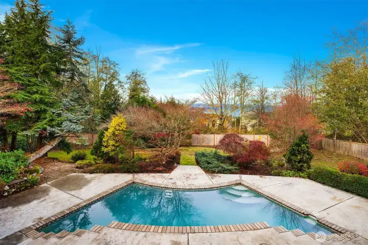 Impressive Northwest style home on a beautifully landscaped lot located at the top of Lakemont with views of Lake Sammamish & Mt Baker! Ideal for entertaining, all living spaces are on the main floor. Gourmet kitchen opens to family room & dining room. Spacious living room has 2-story vaulted ceilings & circular sitting area with fireplace. Outside, a view deck with hot tub overlooks an in-ground swimming pool & patio. Primary suite has fireplace, deck, 5-piece bath & 2 walk-in closets. In the yard are varieties of Japanese maple, evergreen, perennial flowers, fruit trees & a large, level lawn perfect for gatherings & games. Gated entry & perimeter fence offer privacy. Enjoy walking the Lakemont trails from right outside your front gate!