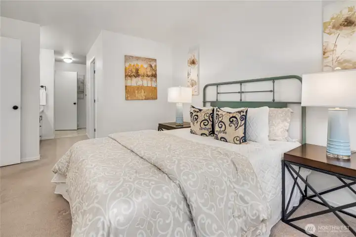 Welcome to this beautifully refreshed TOP FLOOR/END UNIT tucked in Terrace @ Riverview (a peaceful/lovely green community). This townhome shines w/brand-new flooring, fresh paint, updated kitchen/baths - blending modern style w/everyday function. Spacious/sunlit living area invites you to relax while the primary suite offers a private retreat w/a walk-in closet & attached bath. Enjoy a covered patio w/peaceful greenbelt views—ideal for coffee, friends, or a moment of calm. Oversized 1-car garage w/storage. Easy access to freeways, shopping/trails/parks/SeaTac airport/dwntwn Seattle, this home offers a blend of comfort, style & accessibility. Move-in ready w/all appliances provided. Low HOA dues. 2 pets allowed. PREINSPECTED & NO RENTAL CAP!