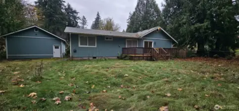 Investor Opportunity! Spacious single-story home offering nearly 2,200 sqft on a generous double lot in desirable Canta Rana Estates. Home sits on a level lot of over half an acre. 2 parcel ids. Property includes a detached two-car garage with add'l shop/workspace. Home has a newer roof and well-maintained exterior, giving you a solid starting point for your vision. Soil erosion beneath the foundation affecting an estimated 20 ft span. The foundation remains intact, but will require work to secure the area and prevent further erosion. Sold AS-IS. Just minutes away from the heart of Gig Harbor, waterfront parks, forest trails, restaurants, shopping, and other amenities! Buyers to verify all information to own satisfactions.